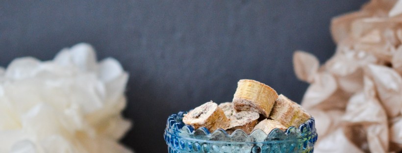 Rinne neuvoo käyttämään napakoita banaaneja, joista kuulemma syntyy parhaat karkit. Itse testasin hieman tummuneita, koska niitä ei meilläkään kukaan mielellään sellaisenaan syö. Muutama muu hyvä ohje tummuneiden banaanien hävittämiseen löytyy lopusta!