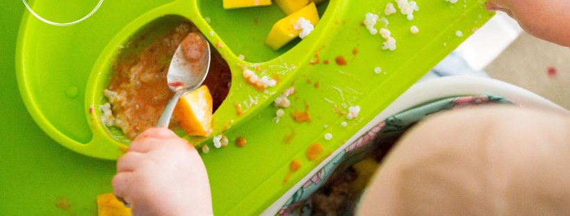 Pääasiallisesti ruoka on syöty omin sormin ja luonnollisesti levitelty kiitettävästi myös syöttötuolin ympäristöön. Siivottavaa on siis ollut, mutta edelleen sormiruokailu on ollut ihanaa, koska itse on pystynyt syömään samaan aikaan.