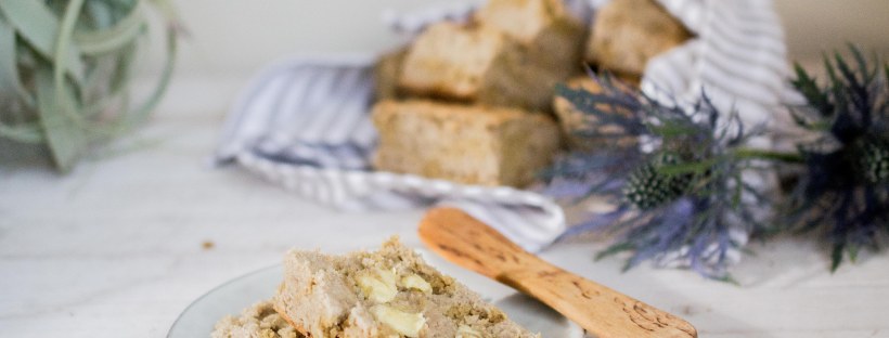 Hiivaton ja vähemmällä tärkkelysmäärällä leivottu leipä murenee herkemmin kuin Kristiinan versio, mutta on edelliseen täydellisen herkullista. Jos siis hiiva käy sinulle, suosittelen koittamaan sen kanssa. Ohjeen saat tällöin helpoiten Kristiinan blogista.