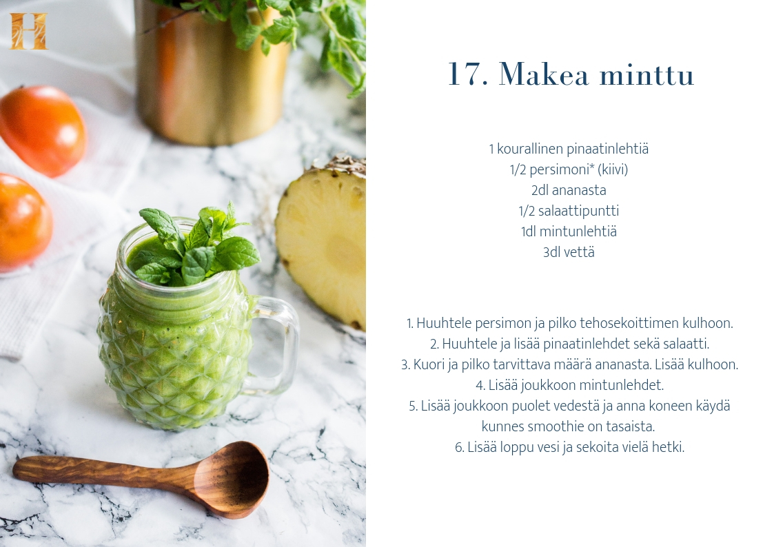 Nyt uskallan jo sano, että maaliskuussa palataan tehosekoittimen ääreen -yhdessä 😉 Loppuun vielä kirja-aukeaman muodossa yksi ohje teille kokeiltavaksi ❤