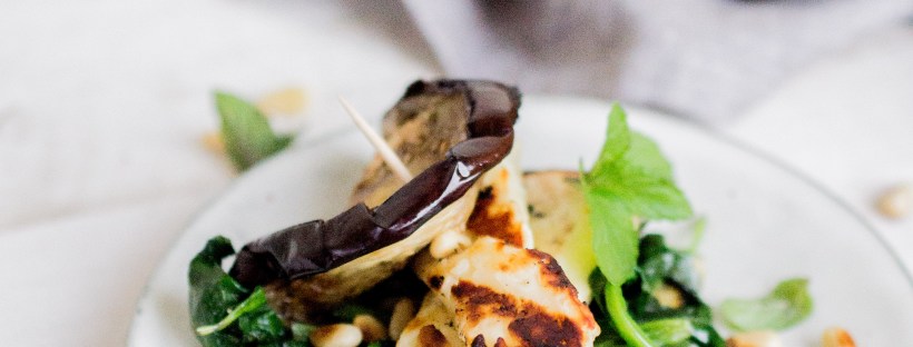 Idea oli niin hauska, että se vaati testauksen. Grillatut munakoisosiivut täytetään paistetulla pinaatilla, kullanruskeat raidat saaneilla halloumisiivuilla sekä tuoreella mintulla. Päälle ripotellaan paahdettuja pinjansiemeniä purutuntumaa antamaan. Lisäsin wrappiohjeeseen vielä myös omenasiivut, sillä mielestäni lampaanmaitohalloumi vaati sitä suolaisuuttaan tasapainottamaan. Me vähensimme varsinaisen aterian proteiinipitoisuutta ja otimme nämä munakoisowrapit lisukkeina ateriaa täydentämään. Toimivat hyvin broilerin ja … Jatka artikkeliin Munakoisowrapit